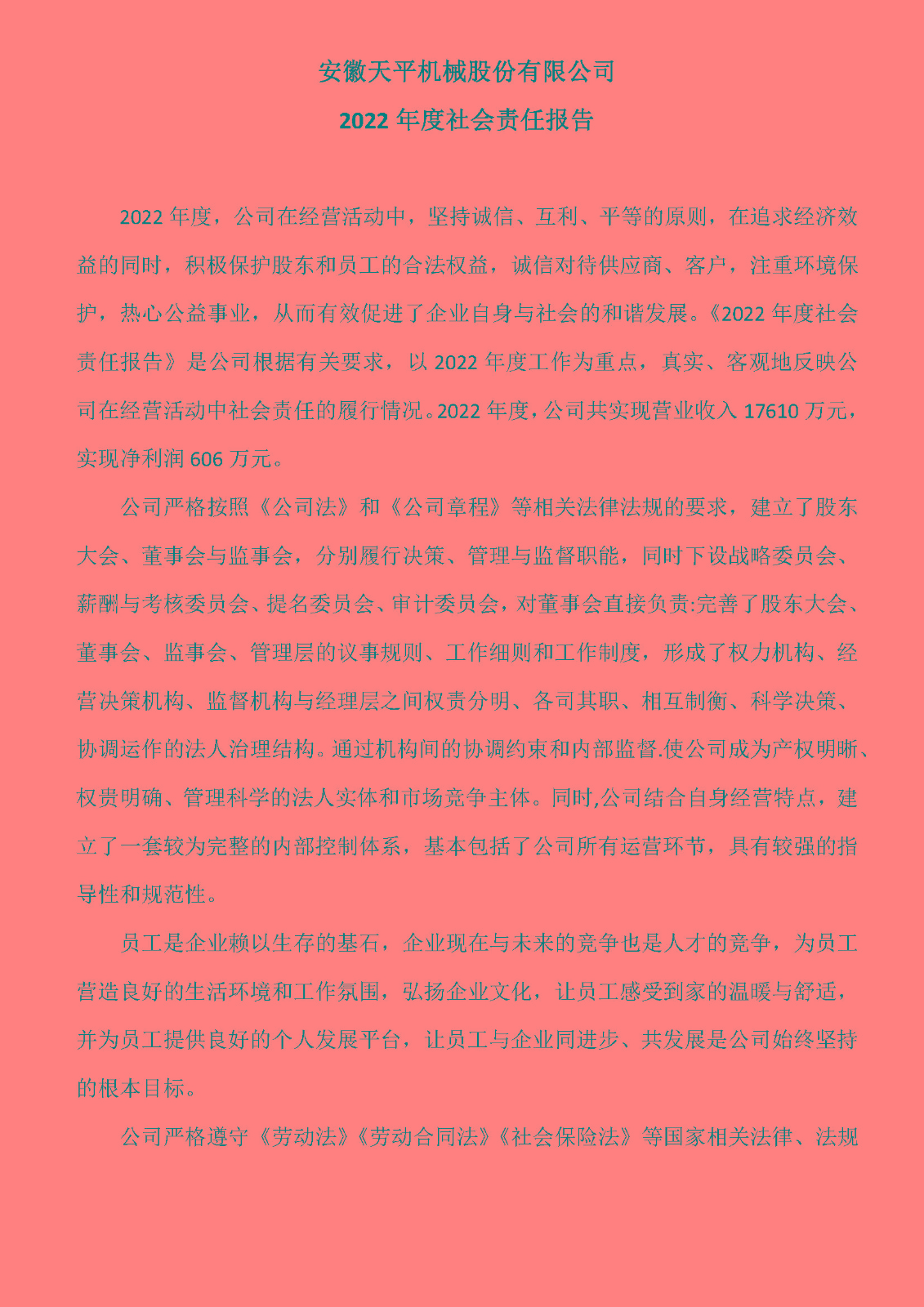 2022年度社會(huì)責(zé)任報(bào)告(天平公司)